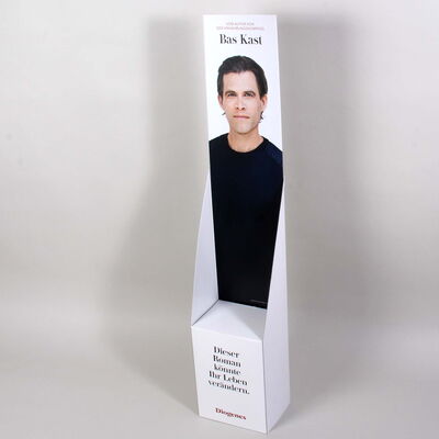 Turmatiger Bodenaufsteller zur Stapelpräsention von Büchern.