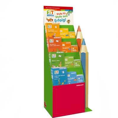 11 veschieden Titel, insgesamt 56 Bücher finden Platz, auf 3 Etagen, in diesem stabilen Theken- kasten. 4-fbg. bedruckte, kaschierte Wellpappe.